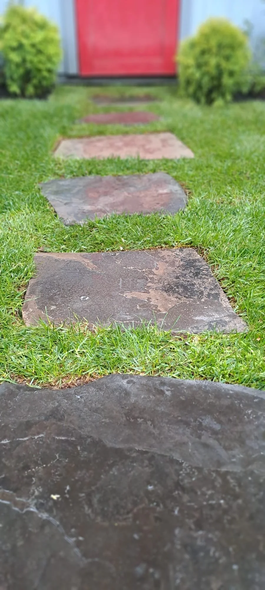 This homeowner wanted to add a natural touch to their cozy backyard and fell in love with the look of natural flagstone. We installed a beautiful random flagstone patio, carefully fitting each piece together seamlessly. They were so impressed with this upgrade that we were invited the following year to re-sod and add some lovely finishing touches their front and back garden. The result transformed their grassy yard into a welcoming space, perfect for relaxing summer evenings filled with good company.